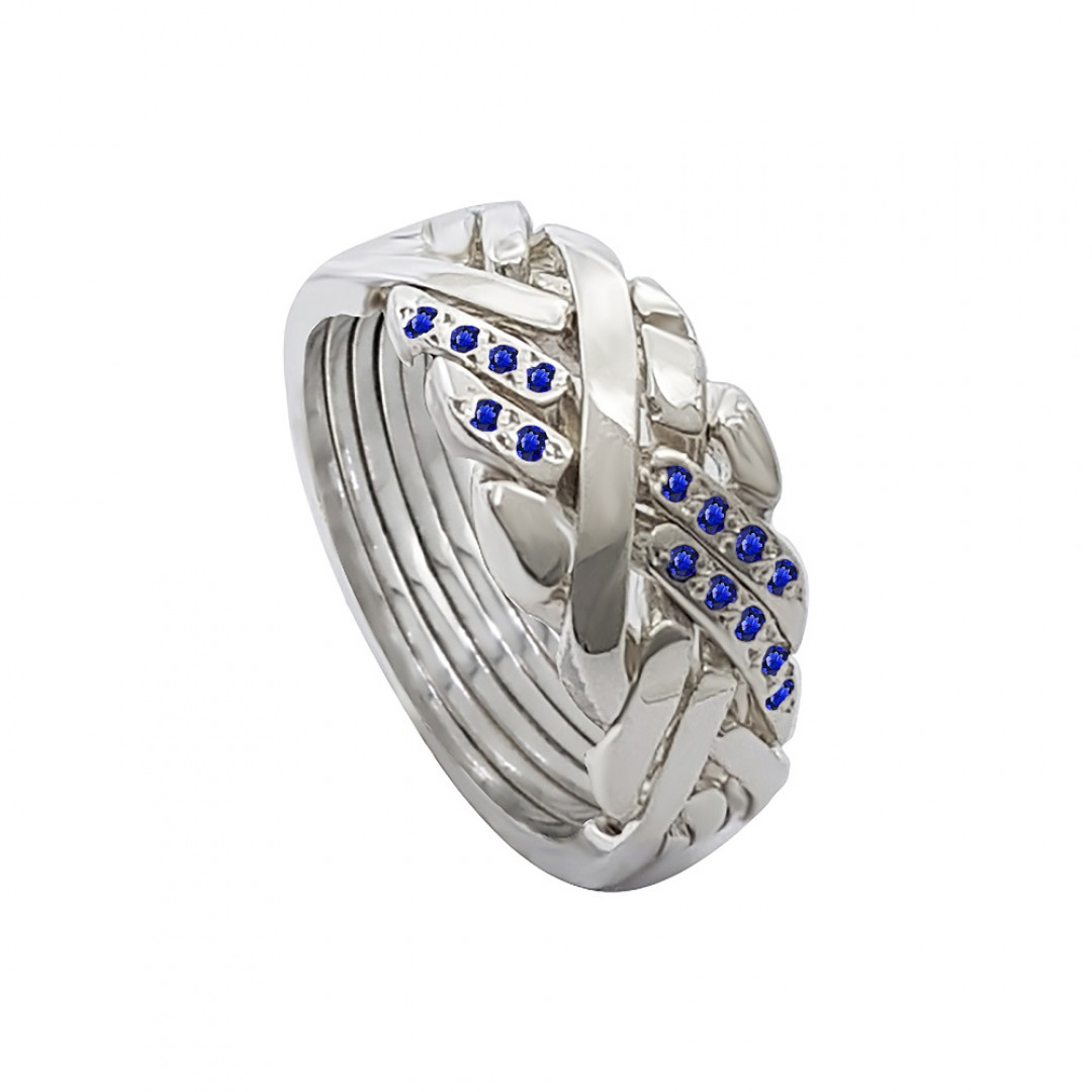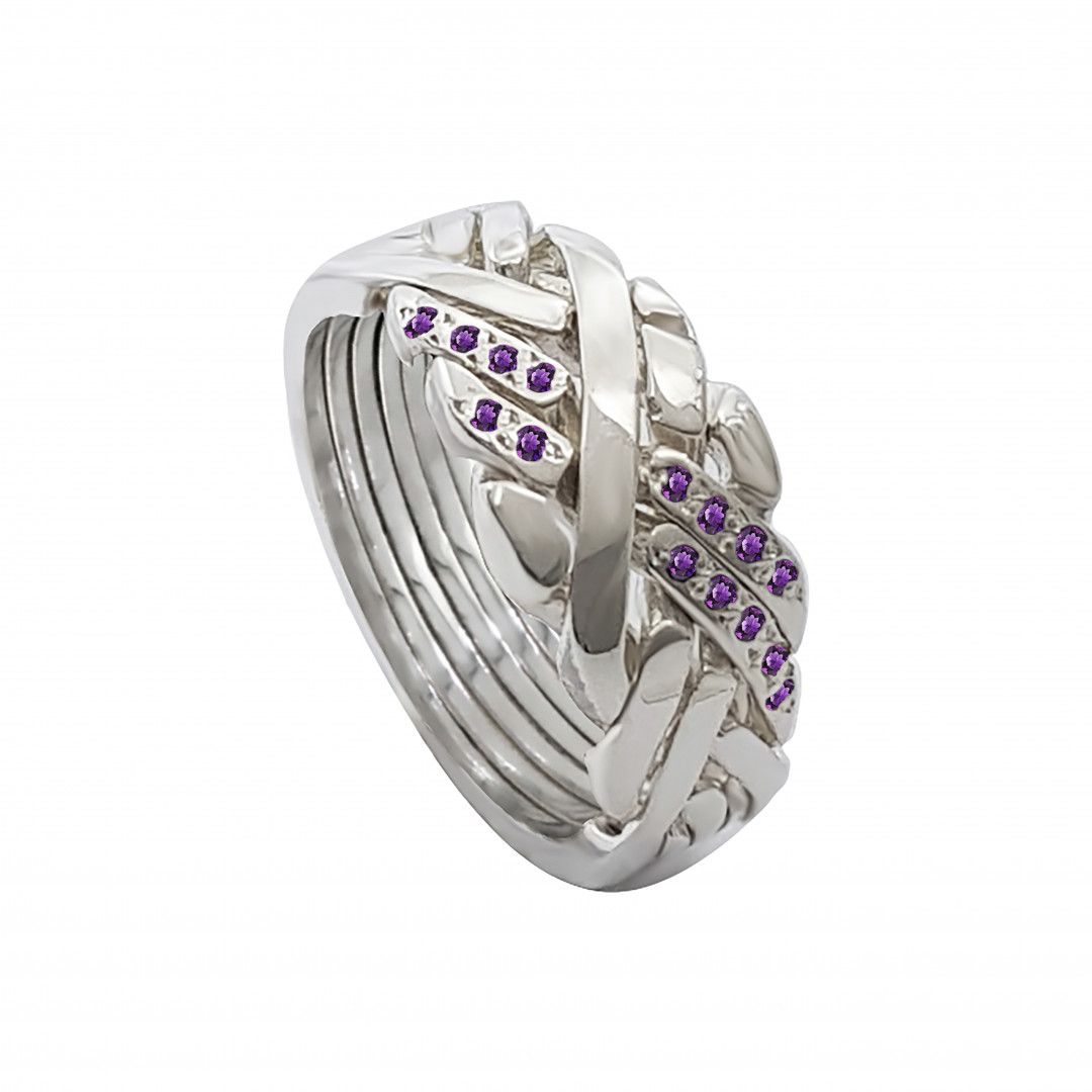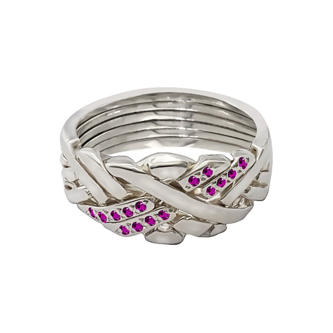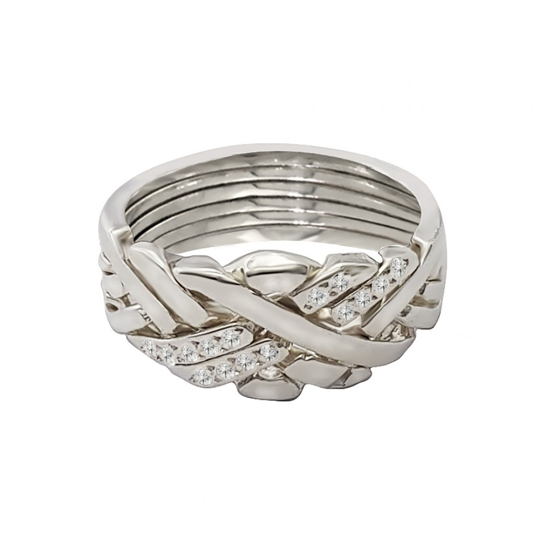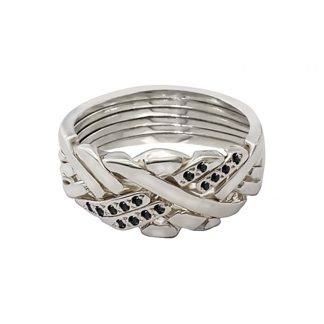 925 Sterling Silver 6 Band Anatolian With Stone Two Line